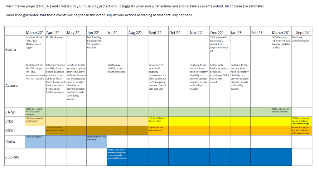For clients who want to plan ahead, sometimes I create a timeline like this. Everyone’s timeline is different, it depends on their health conditions, personal goals, and disability benefits.